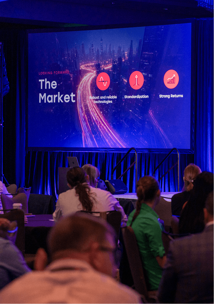 Where the physical environment commanded attention with bold color and scale, the digital presence took a different direction — dark, immersive, and rooted in the visual language of science fiction. Every executive keynote received a fully custom presentation — each one designed to carry the same visual weight on stage as the brand did on the show floor.